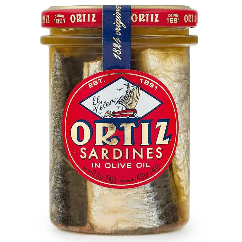 Ortiz 'a la Antigua' hand-packed sardines in olive oil (190 g jar).